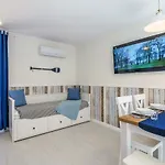 Such in-room facilities as a flat-screen TV with satellite channels, along with comforts like an ironing set and climate control are at guests' disposal. The 26 m^2 Blekitne Zacisze Apartment is equipped with a bathroom that features a hair dryer and bath sheets. A shower can also be found.